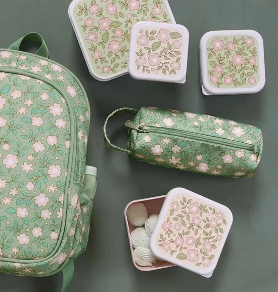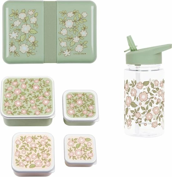 A Little Lovely Company Back To School Set – Drinkfles / 4 Snackdozen / Lunchbox – Bloesems Saliegroen