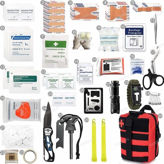 AJOTEQPT Survival Kit – Noodpakket – EHBO Kit – Outdoor Kit – EHBO-Kits – Survival Kits