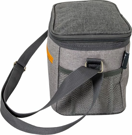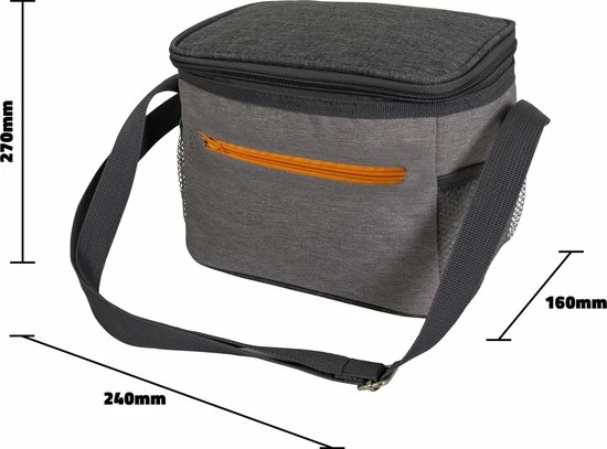 - De koeltas is voorzien van een handige draagriem, een voorvakje met rits en 2 mesh zijvakjes.