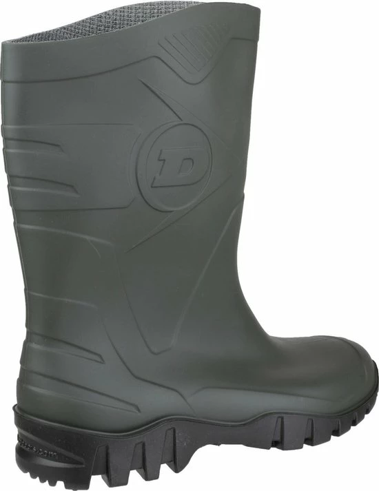 Halfhoge waterdichte PVC laarzen voor heren en dames van Dunlop. Ideaal voor werk, vrije tijd of tuinieren. De rubberlaarzen zijn gedeeltelijke bestand tegen zuren, oliën, meststoffen, desinfectiemiddelen en diverse chemicaliën. Het bovenwerk is vervaardigd PVC waardoor de laarzen flexibel en waterdicht zijn, maar ook goed bestand is tegen slijtage, soepel is bij kou en heeft een bijzonder goede grip door de speciale anti-slip zool. De binnenvoering is gemaakt van eenvoudig te onderhouden polyester. De kuitlaarzen van Dunlop hebben een schacthoogte van ongeveer 26 cm en een rubberen zool met grof profiel voor een goede grip en demping. Let op: de laarzen vallen groot uit. We raden je aan een maat kleiner te bestellen.
