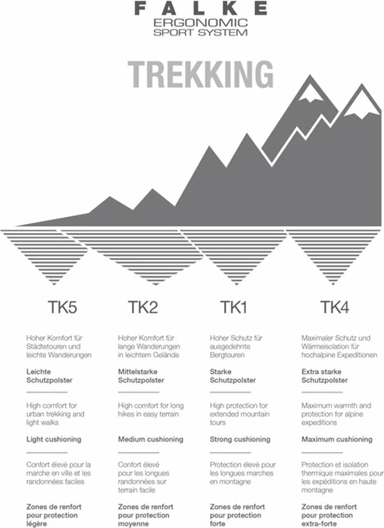 Unieke FALKE kwaliteit: Wij stellen de hoogste eisen aan wat uw lichaam beschermt en verwarmt. FALKE: traditioneel bedrijf en de hoogste kwaliteit sinds 1895. Genderspecifieke proporties dankzij speciale breiprocessen en cilinders; anatomische L/R pasvorm met teen- en zoolgedeelte aangepast aan elke voet, een FALKE innovatie die zorgt voor een kreukvrije pasvorm, bescherming tegen drukpunten en een langere levensduur.