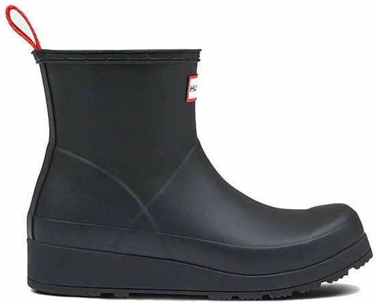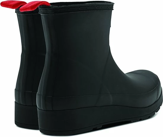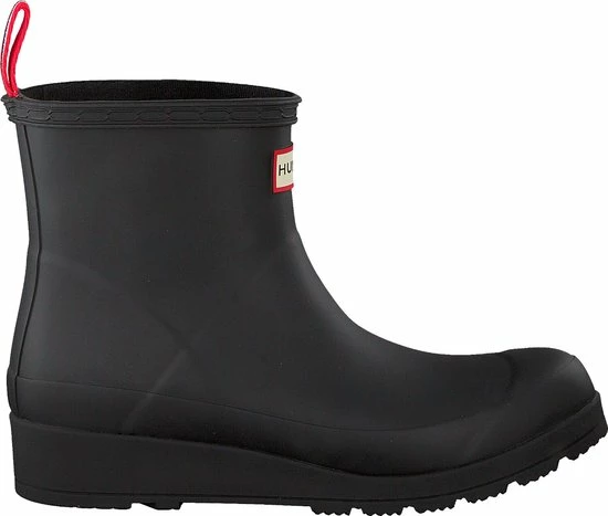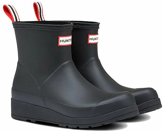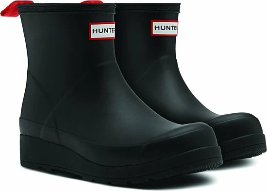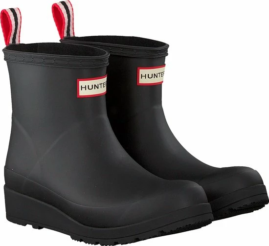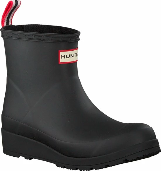 Met deze mooie korte regenlaarsjes van het merk Hunter heb jij gegarandeerd droge voeten wanneer je een regendansje doet! Dit model Play Boot Short heeft een zwart rubberen buitenkant met het merklogo aan de voorkant van de schacht en een handige aantreklus van textiel aan de achterzijde.