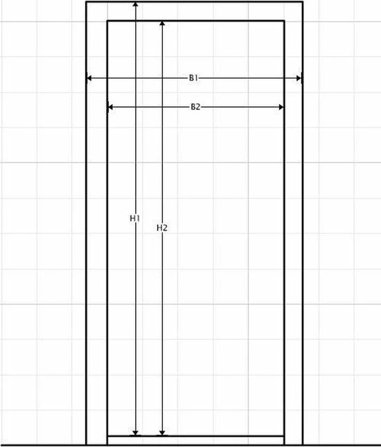 - Meet de binnenbreedte van uw kozijn op (in de tekening maat B2).