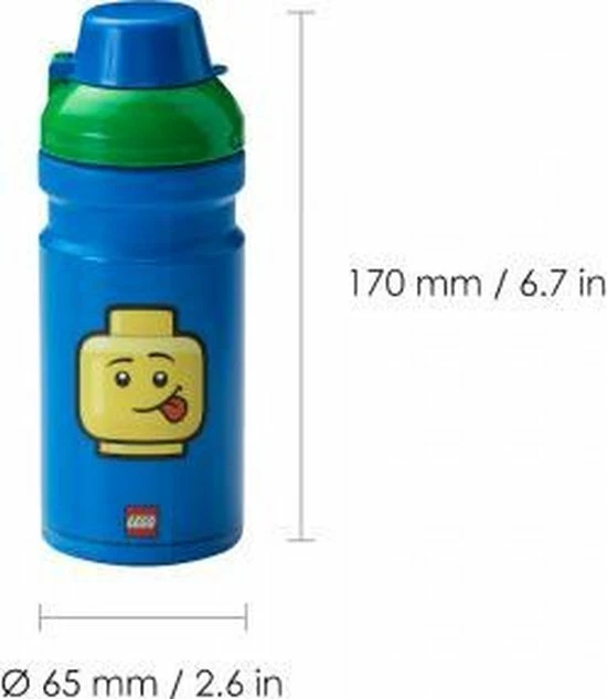 Je dorst lessen doe je in LEGO® Boy Minifiguur stijl! Verleng het LEGO-avontuur met deze LEGO-drinkfles. De fles heeft een mooie grip die geschikt is voor kinderhanden met LEGO Minifiguur Emoticon afbeeldingen en is een leuke manier om de hele dag voldoende te drinken. De drinkfles is voorzien van een semi-transparante dop die de siliconen drinktuit beschermt tegen vuil wanneer de fles niet wordt gebruikt. Het deksel kan worden losgedraaid voor eenvoudig vullen en reinigen. Voor een volledige lunchset combineer je de LEGO Boy Drinkfles met de LEGO Boy Lunch Box (niet inbegrepen). * Blauwe fles met een groen deksel en semi-transparante blauwe dopsluiting. * De drinkfles is eenvoudig te reinigen en vaatwasmachine bestendig. (Max 40° C). * Was de fles voor het eerste gebruik eerst goed uit! * Combineer de drinkfles met een bijpassende LEGO lunchbox.