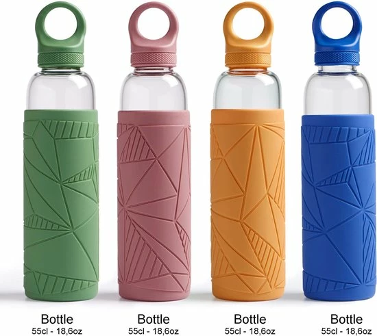 De fles is gemakkelijk mee te nemen door de draaidop met een lus. Deze draaidop is lekvrij en de opening is breed genoeg om ijsblokjes toe te voegen. Om de fles extra te beschermen heeft deze een trendy sleeve. Deze sleeve zorgt voor meer grip en voorkomt dat de fles breekt wanneer deze valt.