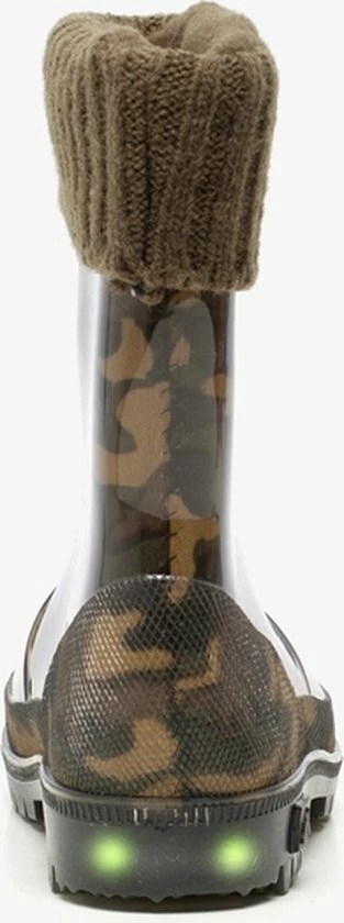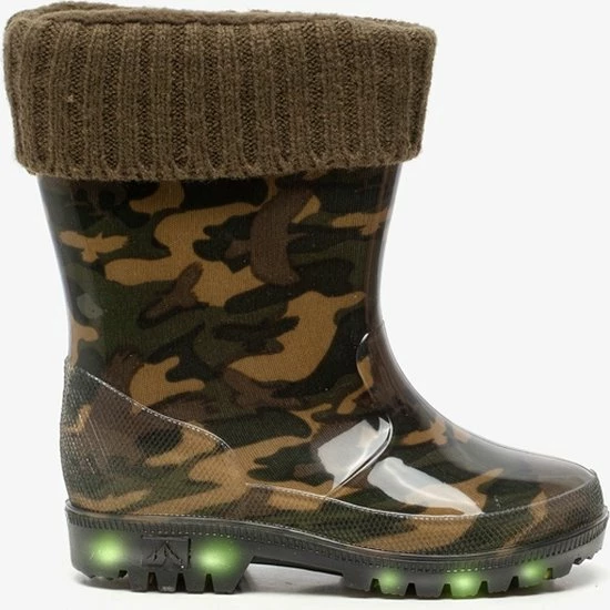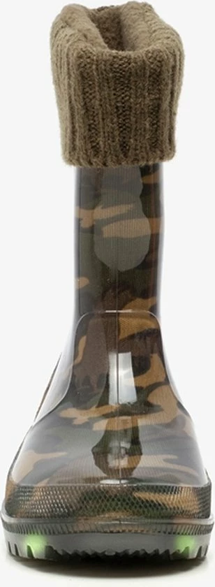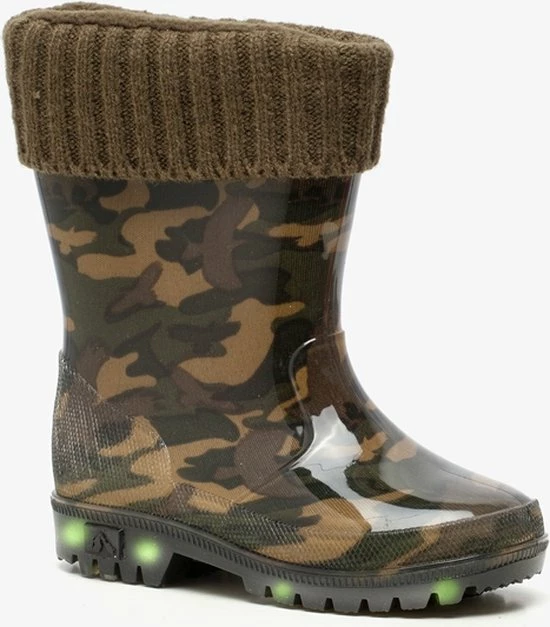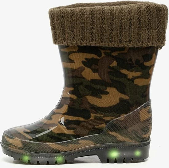 Stijlvol in de plassen stampen met deze regenlaarsjes met camouflage print uit de Mountain Peak collectie. Gemaakt van synthetisch PVC, wat de laarzen flexibel maakt. De regenlaarzen hebben een zachte voering en omslag van gebreide stof. Het comfortabele voetbed is gemaakt van textiel en is niet uitneembaar. Voorzien van een stevige, schokdempende profielzool van rubber die grip en optimaal comfort biedt. De laarsjes hebben trendy camouflage print op het bovenwerk en lichtjes in de zool. Ontworpen voor een all-round bescherming in verschillende (weers)omstandigheden en condities, van wandelen in het bos tot stampen in de plassen of door het zand. Verkrijgbaar in de maten 23 t/m 33.