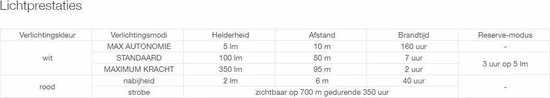 Het witte licht is afstelbaar van zwak t/m boost-modus
