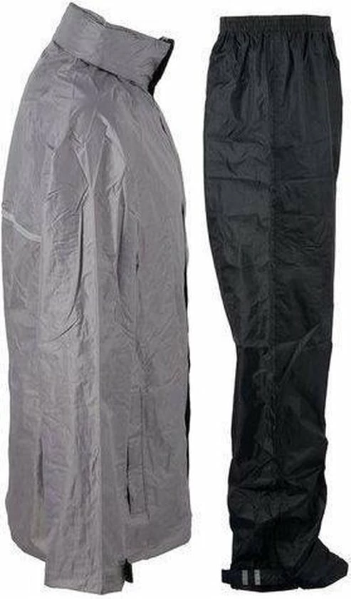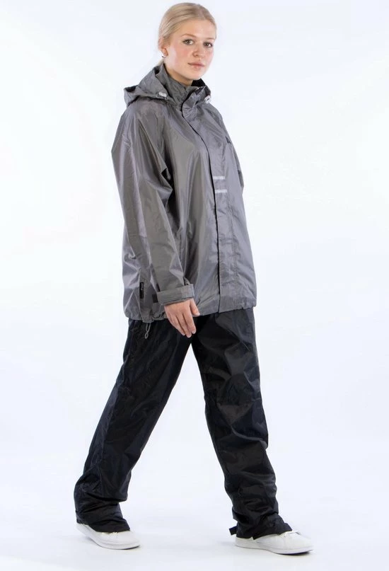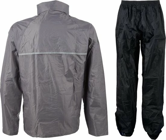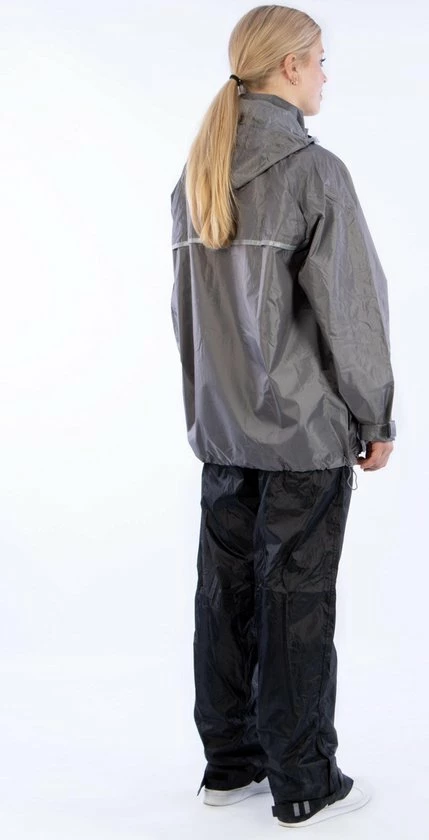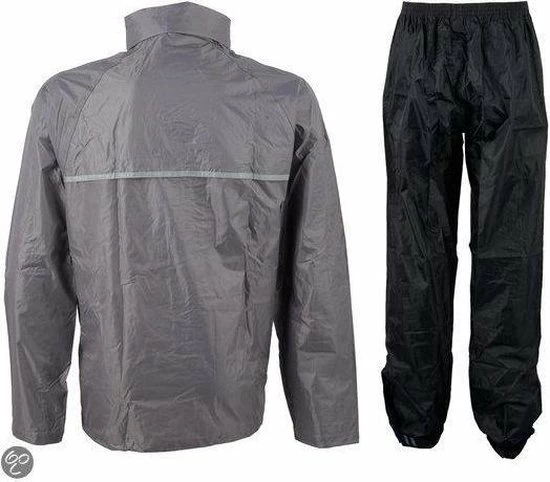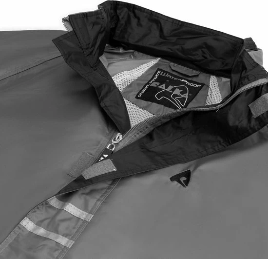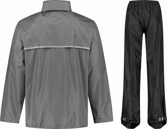 Nooit meer een nat pak met dit Ralka Regenpak! Dit 2-delige regenpak gemaakt van 190T polyester is 2000 mm gecoat en heeft overal getapete naden. Het jack heeft een capuchon in de kraag. In de zoom aan de onderzijde zit een elastisch koord met stopper en klittenband bij de manchetten zodat het jack goed aansluit. De ventilatie openingen op de rug zorgen voor extra draagcomfort. De broek heeft een elastische tailleband en de onderzijde van de pijp kan versteld worden m.b.v. klittenband. Met de reflectie strepen voor- en achter ben je ook in de zwaarste storm goed zichtbaar! De set wordt geleverd in een handig draagtasje.