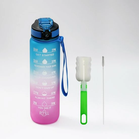 Sahara Sailor – Waterfles 1 Liter – Motivatie – Tijdsmarkering – Lekvrij – Blauw Roze