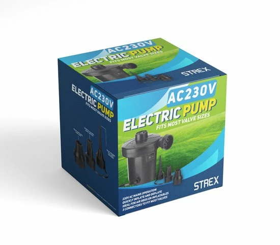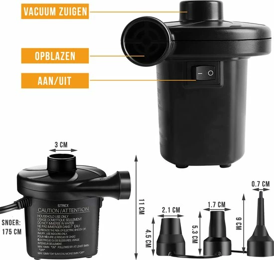 ▶ Sterke luchtpomp: De Strex elektrische pomp blaast met gemak je zwembad of ligbed op. De duurzame sterke pomp pompt met 250L/minuut en is daarom sneller dan de meeste compacte pompen op de markt. Een opblaasmatras is opgepompt in circa 3-5 minuten.